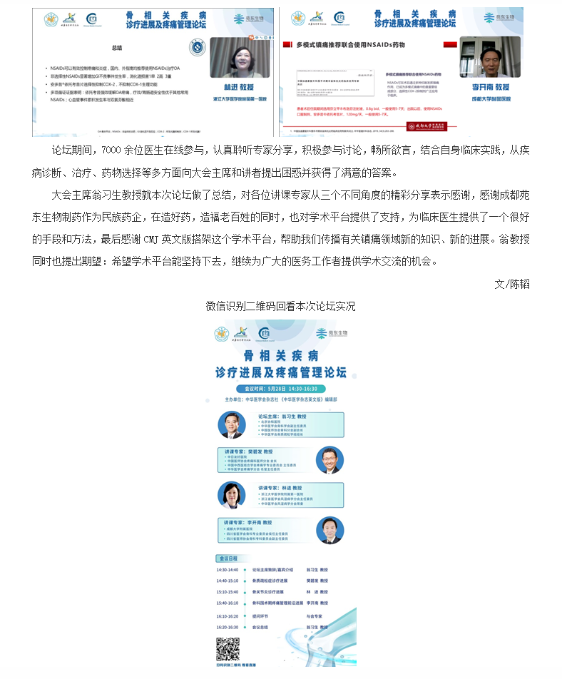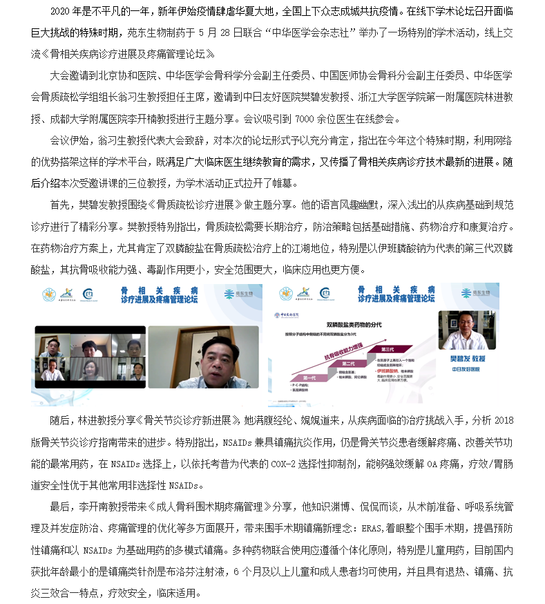成都bsports生物制药联合中华医学会杂志社成功举办 “骨相关疾病诊疗进展及疼痛管理论坛”线上学术活动